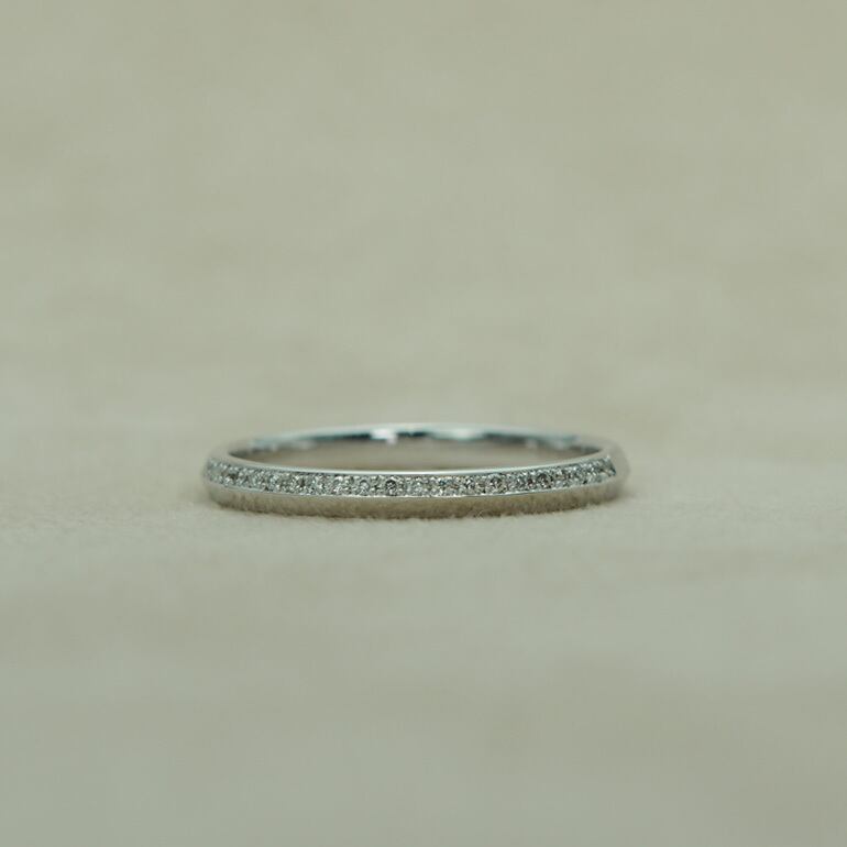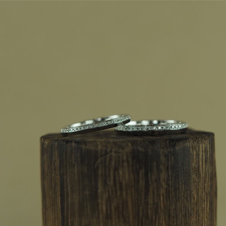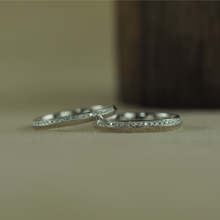 夜空に散りばめられた星々のように、キャンバスにダイヤモンドの煌めきがちりばめられそれは、一瞬の閃光ではなく、途切れることのない光の連なり。熟練の職人の手によって、一つひとつのダイヤモンドがまるで音符のように配置され、指先で奏でられる静かなメロディーを紡ぎ出しています。身につけるたびに、あなたは光を纏い、永遠の美しさを手にするのです。