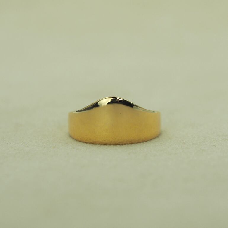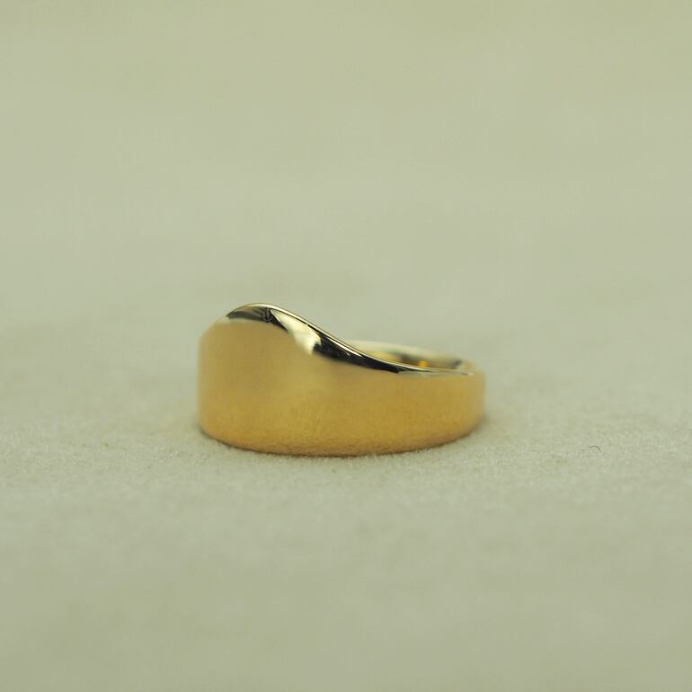 指輪の片側だけスロープのように駆け上がるイメージでデザインされた小指用の指輪です。駆け上がっている部分を写真のように装着することで指を長く見せる効果もあるデザイン。幅の広いピンキーリングを着けるこでモードな印象を与えます。