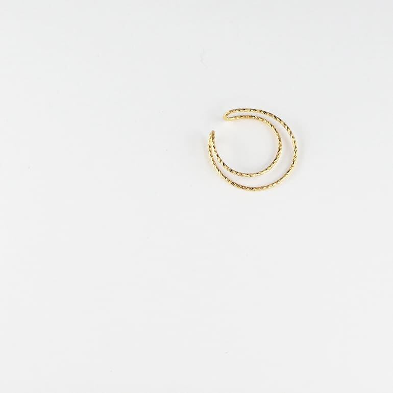 細身のロープチェーンデザインを大きくねじりひとつのフープからダブルのイヤーカフになっています。繊細なラインは上品な輝きを放ち、何気ない女性らしさを演出します。高品質の18金素材を使用。