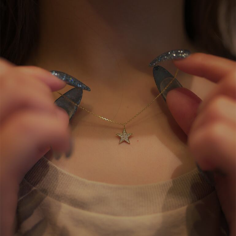 人気のモチーフ「星」のキャッチーなデザインはマストアイテムになっています。サイズ感も良い大人のお洒落を感じさせるこちらのネックレスはダイアモンド有無の2タイプ。ペアネックレスとしてもおススメのデザインです。(こちらはダイアありのアイテムになります)