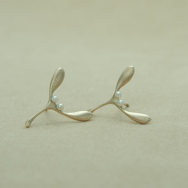 お手元にヤドリギを添えて、真珠の輝きを身にまとってみませんか。日本の伝統的なデザインを取り入れたデザインは、どんなコーディネートにも華やかさをプラスしてくれます。シンプルながらも上品なデザインは、普段使いはもちろん、特別な日のアクセントとしてもおすすめです。このパールピアスは、選りすぐりの上質な愛媛県宇和島市、松本真珠の無調色パールを使用しています。艶やかな真珠が、あなたの耳元に寄り添い、気品を漂わせます。日常の中でも、贅沢な気分を満喫できるような一品です。