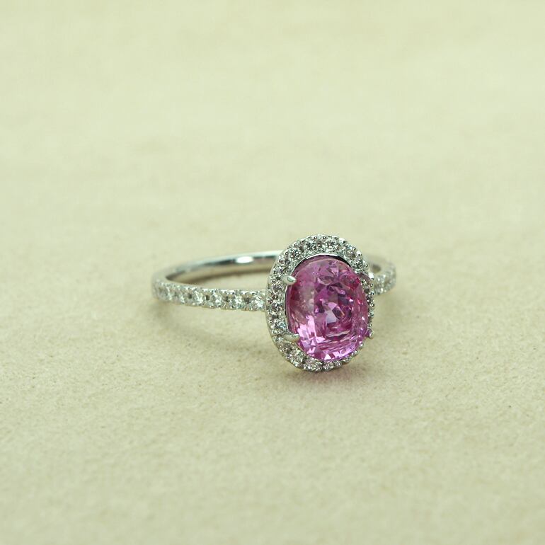 パッションピンクの輝きが魅力的なピンクサファイアリング。その鮮やかな輝きは、まるで心の中にある煌めく情熱そのもの。指先を華やかに彩るジュエリーとして、女性らしさを引き立てます。周囲を囲むダイヤモンドの輝きが、より一層美しさを際立たせます。