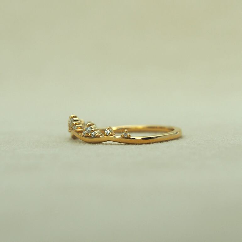 レース模様をイメージしてデザインされたエレガントなリング。繊細なレース模様が指元を美しく飾り、キラキラ輝くダイヤモンドが上品な輝きをプラスします。細身のデザインは、シンプルながらも洗練された印象を与えます。