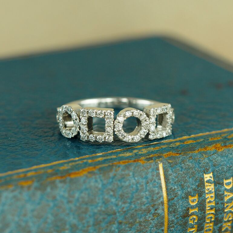 幾何学模様を取り入れた指元を華やかに彩るモード系ダイアモンドリング。直線と曲線で描かれたキャンバスは絶妙なバランスで組み合わされています。洗礼されたエレガントなデザインでありながら日常に使いやすいアイテムです。